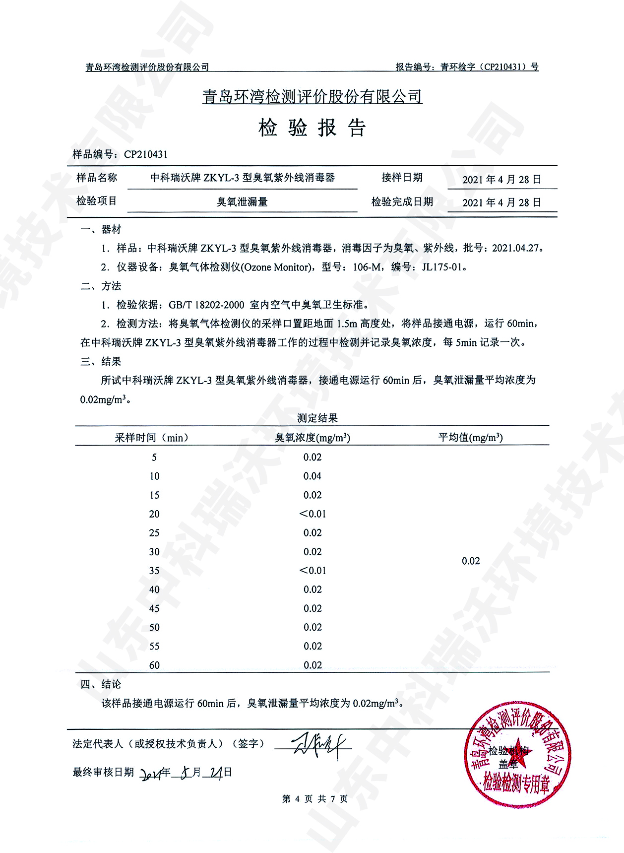 醫療污水處理設備檢測報告~臭氧+紫外線消毒
